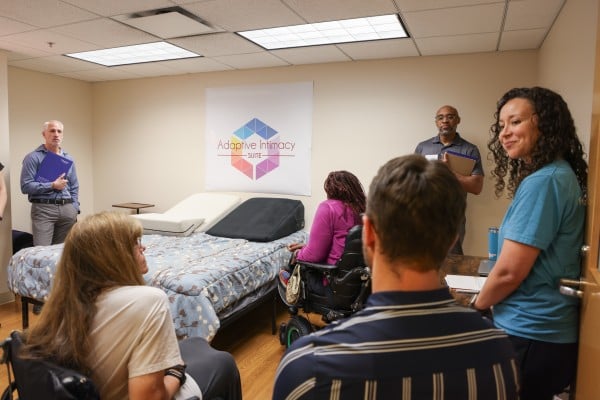Mark Bogosian, Director of Engagement at the Reeve Foundation National Paralysis Resource Center, served as an internal reviewer for the grant application. He was deeply moved during the visit. “I got a little choked up when we visited the Adaptive Intimacy Lab,” Bogosian said. “I truly believe this is a lifesaver, and the work in this area can have national, if not global, impact.”