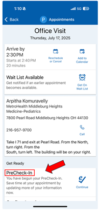 - Go to Appointments and select your upcoming visit.